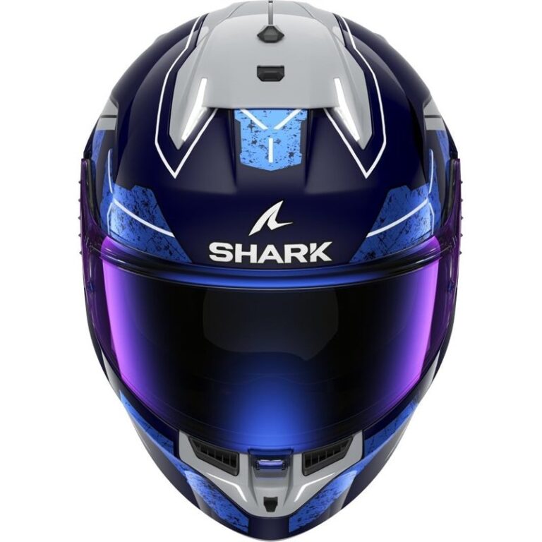 El casco integral Shark D-Skwal 3 Blast-R está diseñado para motociclistas y presenta una construcción en fibra de vidrio para